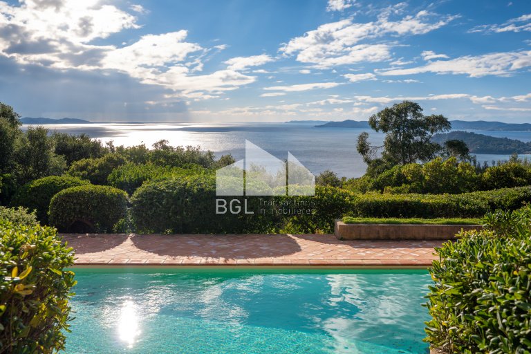 L’agence BGL Transactions Immobilières a le plaisir de vous proposer cette superbe propriété à vendre au Rayol-Canadel-sur-Mer, bénéficiant d’une vue panoramique exceptionnelle sur la Méditerranée et les Îles d’Or.