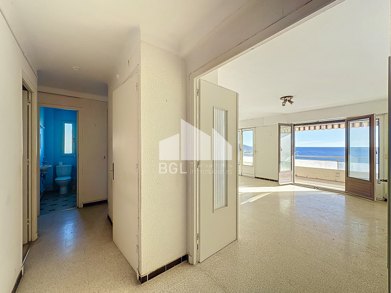 Magnifique vue mer pour ce 3 pièces de 70 m² au 7e étage d'une résidence gardiennée. Il se compose de 2 chambres, d'un séjour lumineux donnant sur une grande terrasse, d'une cuisine séparée, d'une salle d'eau et d'un wc séparés.